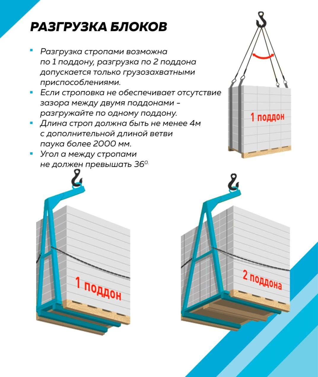 Разгрузка манипулятором включает в себя использование крана, установленного на грузовом автомобиле. Оператор манипулятора аккуратно снимает поддоны с блоками и устанавливает их в указанном месте, что минимизирует риск повреждения материала.